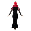 Jelmez tartalma: fekete-piros ruha, magas, zilált gallérral és fejpánt mini koronával
