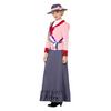 Szürke-Rózsaszín Viktoriánus Korabeli Szüfrazsett Jelmez Nőknek Ruhával, Vállszalaggal és Kalappal - L